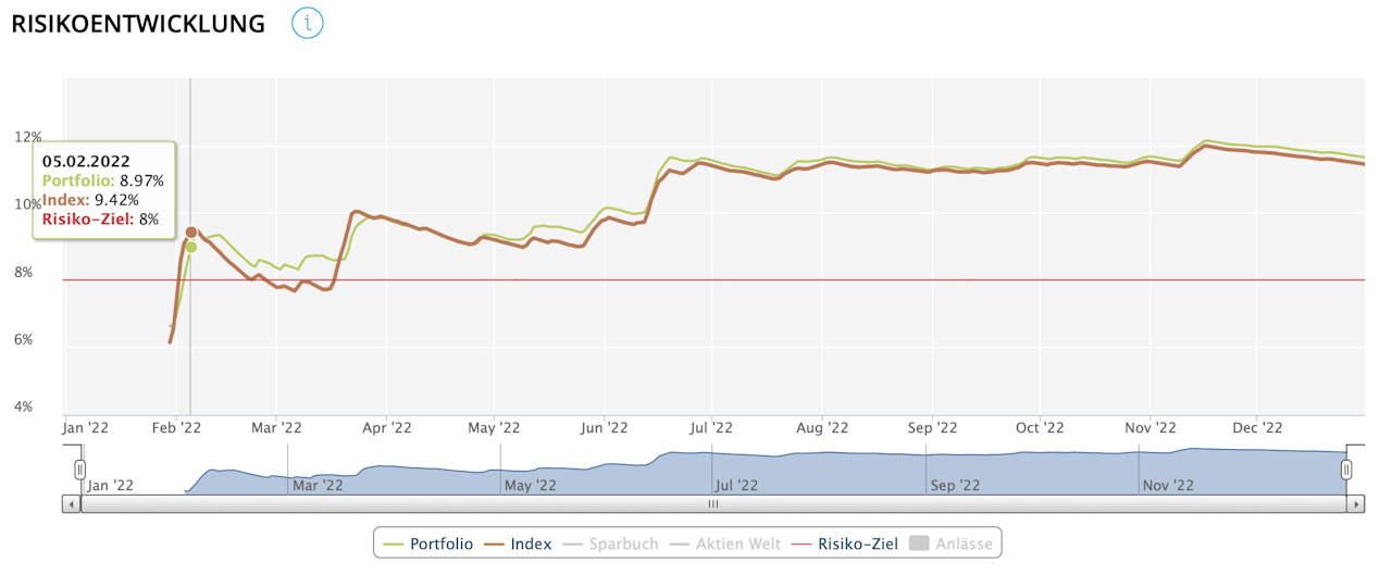 Die rote horizontale Linie zeigt das dem Portfolio zugewiesene Risikoziel an.