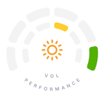 Der Perfometer besteht aus zwei halbkreisförmigen Anzeigen für Volatilität und Rendite sowie einem Wetter-Icon.