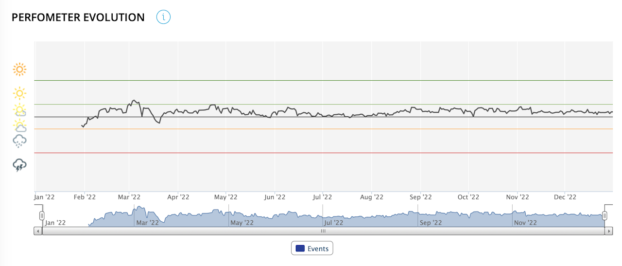 This graph shows the portfolio's perfometer history over the selected period - data is shown from one month after the start of the period.