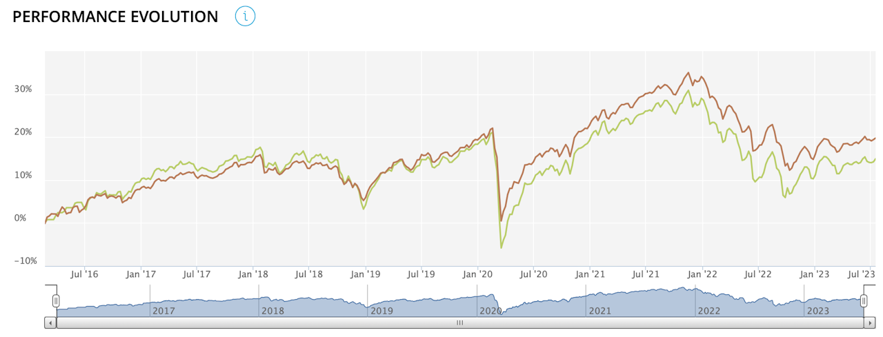 This graph shows the cumulative performance of the portfolio and the selected index since the start of the selected period.