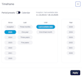 The start date can be defined on the left as the instrument's inception date or the beginning of one of the last 6 years. Alternatively, the previous 3 months, 1-year, 3-year, and 5-year periods can be selected, all against the Last Available Date or the end of the previous month (to synchronise with banking statements, for instance).