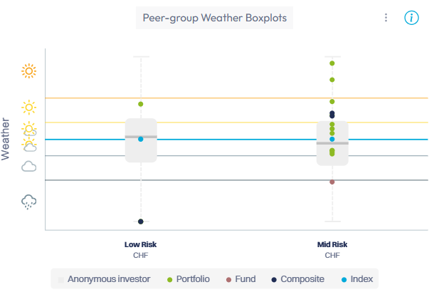Sur la base de la section sélectionnée, un boxplot des météos de la communauté est affiché pour chaque paire de niveaux de risque monétaire.