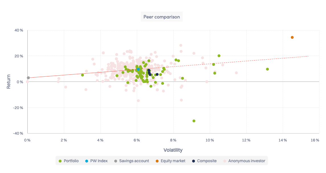 Le graphique de comparaison avec les pairs vous permet de voir votre sélection dans le contexte de la communauté à laquelle elle appartient, pour la période définie, et vous fournit également des informations dans un contexte externe.