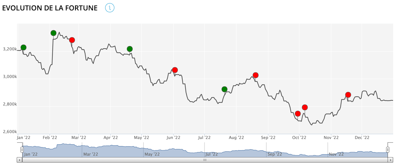 Ce graphique illustre l’évolution de la fortune dans la devise sélectionnée.