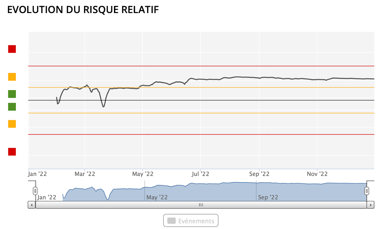 Ce graphique montre la volatilité journalière annualisée cumulée a une date donnée, relative à son indice de référence.