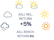 Au centre, en passant le curseur sur la météo, s'affichent la performance relative et le rendement du benchmark ajusté de la volatilité de l'instrument de référence.